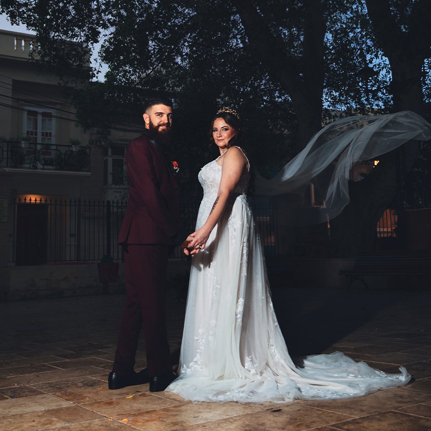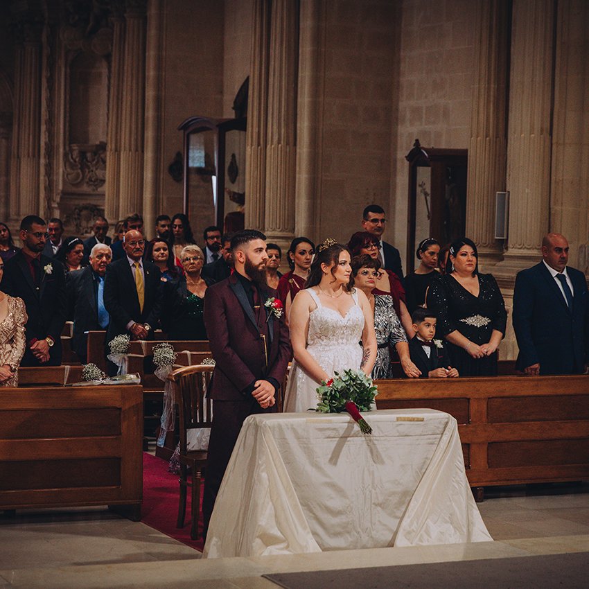 Their ceremony took place at the historic Santa Marija Church, known to locals as Knisja l-Qadima in Birkirkara. The setting was intimate and filled with emotion — a perfect place for two people ready to begin a lifetime together.